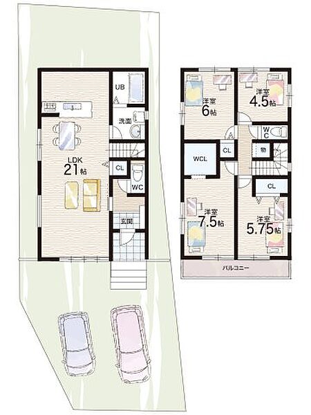 - ※完成予想図やCG合成画像は、門塀・植栽・庭・外観等、実際とは多少異なる場合があります。