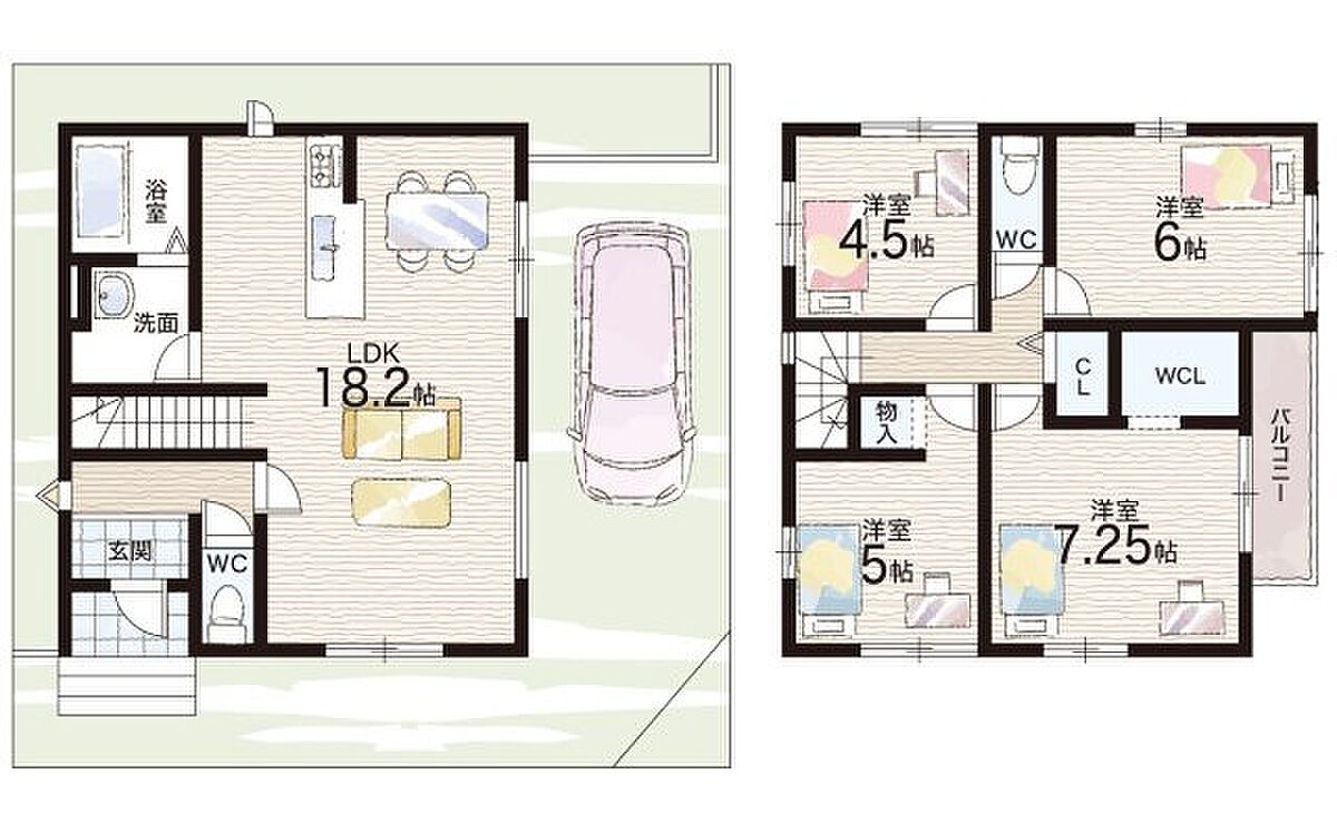 ーこだわりポイントー◆「基本構造部分」の、住宅の基礎、基礎ぐい、壁、柱、小屋組、土台、筋かい、床版、屋根版、梁(はり)、けたなど、「住宅の構造耐力上主要な部分」と「雨水の浸入を防止する部分」を10年保証しています!◆サイディング外壁を使用しております。防火性と耐久性が優れており、長期間美観を保つことができます。また、汚れが付きにくく清掃も容易なのでメンテナンスが簡単です。◆安心して暮らしていただきたいという思いから、建物だけではなく、土地の品質にも妥協しません!土地状況に応じた最適な地盤対策を講じています。