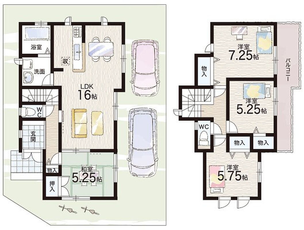 - ※完成予想図やCG合成画像は、門塀・植栽・庭・外観等、実際とは多少異なる場合があります。
