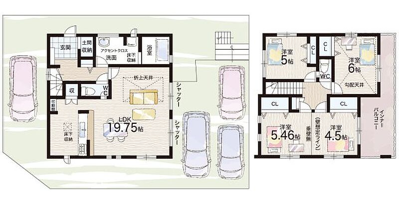 - ※完成予想図やCG合成画像は、門塀・植栽・庭・外観等、実際とは多少異なる場合があります。