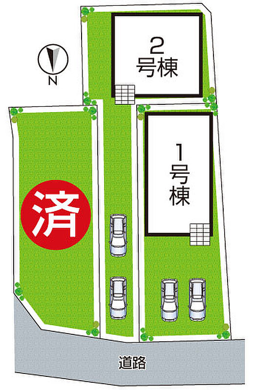 | 駐車場 | 2台 | 道路の幅員 | 北側4.3m公道 |