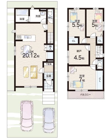 | 間取り | 3LDK+S(納戸) | 建物構造 | 木造 地上2階建て |