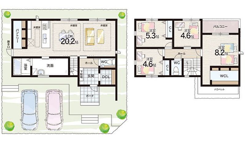- ※完成予想図やCG合成画像は、門塀・植栽・庭・外観等、実際とは多少異なる場合があります。