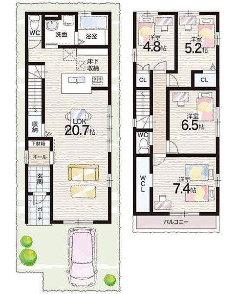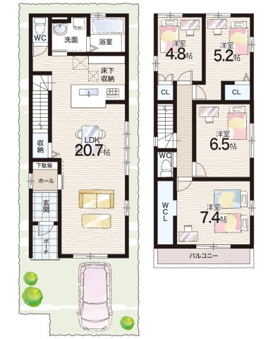 - ※完成予想図やCG合成画像は、門塀・植栽・庭・外観等、実際とは多少異なる場合があります。