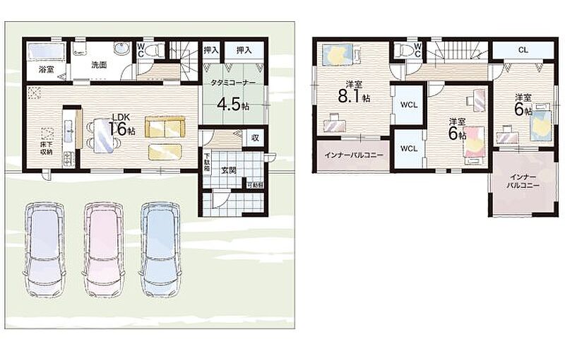 | 駐車場 | 3台 | 道路の幅員 | 南側4.4m公道 |