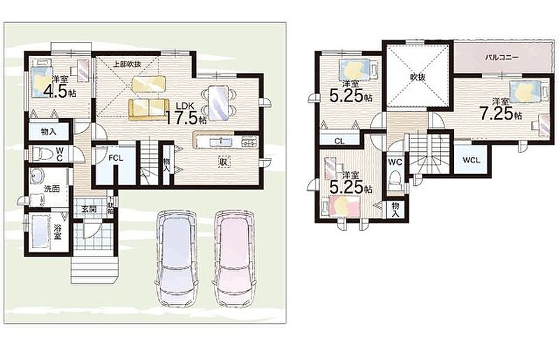 - ※完成予想図やCG合成画像は、門塀・植栽・庭・外観等、実際とは多少異なる場合があります。