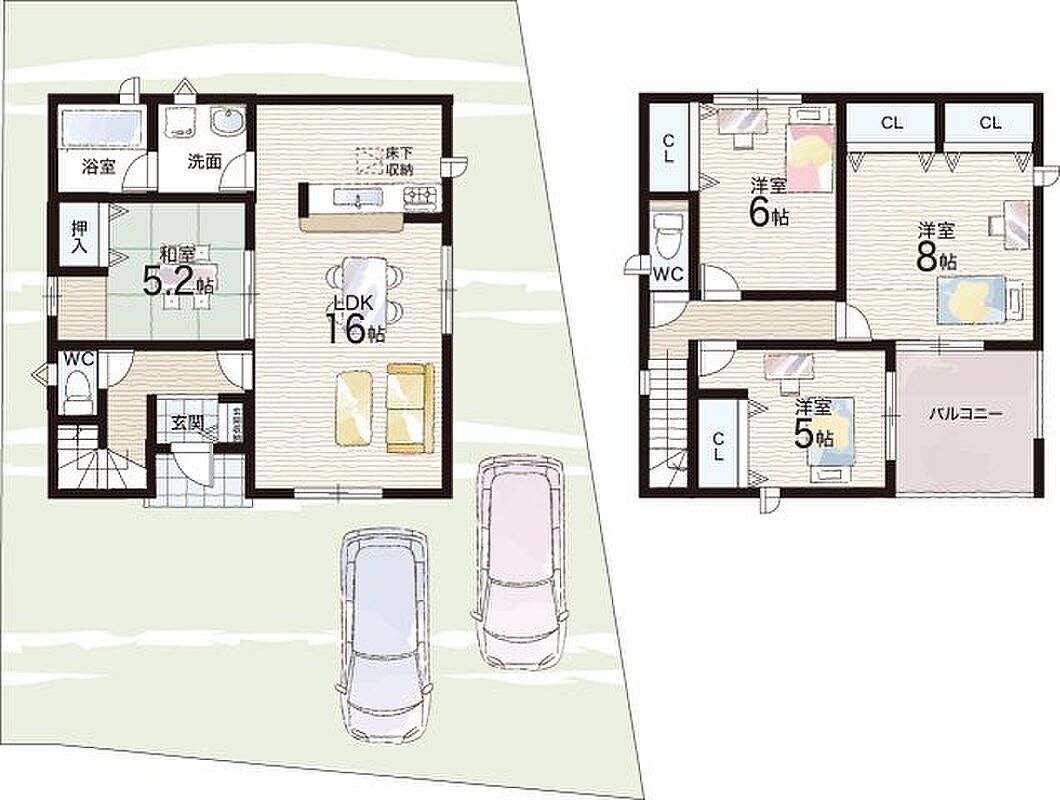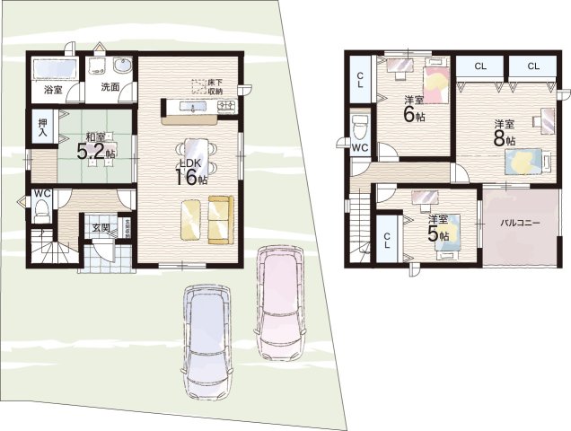 - ※完成予想図やCG合成画像は、門塀・植栽・庭・外観等、実際とは多少異なる場合があります。
