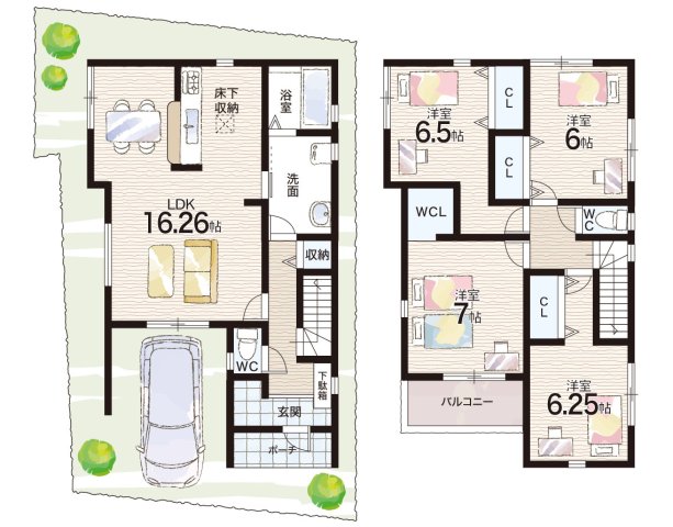 - ※完成予想図やCG合成画像は、門塀・植栽・庭・外観等、実際とは多少異なる場合があります。