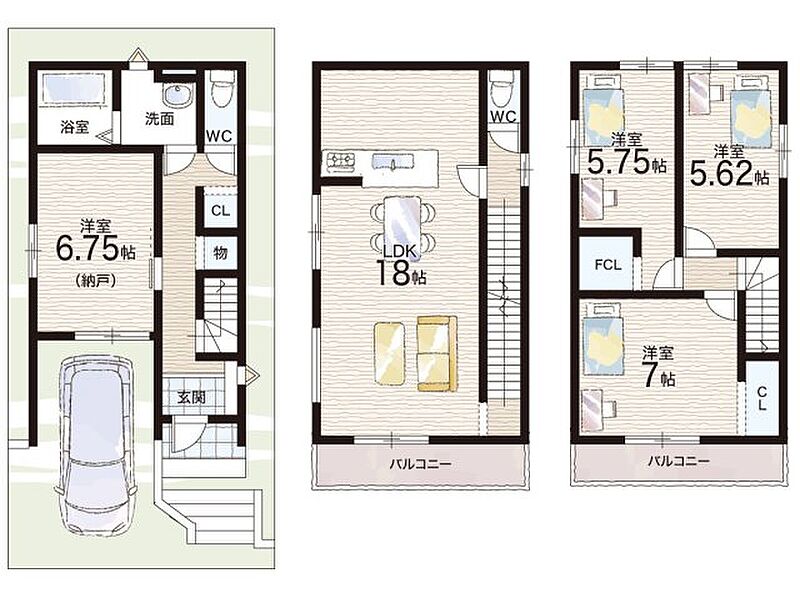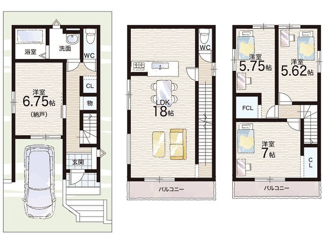 | 間取り | 3LDK+S(納戸) | 建物構造 | 木造 地上3階建て |