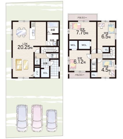 - ※完成予想図やCG合成画像は、門塀・植栽・庭・外観等、実際とは多少異なる場合があります。
