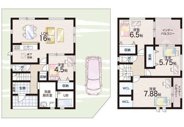 - ※完成予想図やCG合成画像は、門塀・植栽・庭・外観等、実際とは多少異なる場合があります。