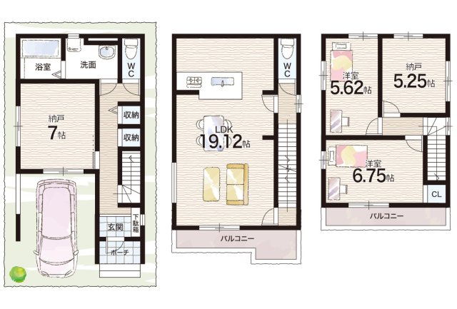 | 間取り | 2LDK+S(納戸) | 建物構造 | 木造 地上3階建て |