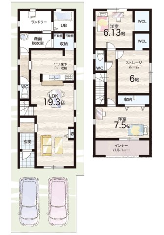 - ※完成予想図やCG合成画像は、門塀・植栽・庭・外観等、実際とは多少異なる場合があります。