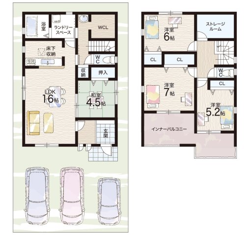 | 間取り | 4LDK+S(納戸) | 建物構造 | 木造 地上2階建て |