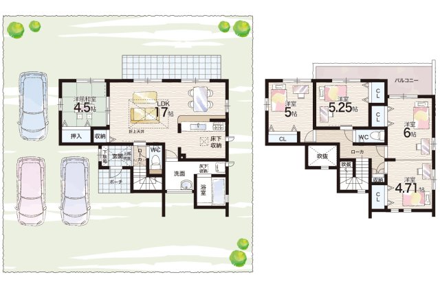 - ※完成予想図やCG合成画像は、門塀・植栽・庭・外観等、実際とは多少異なる場合があります。