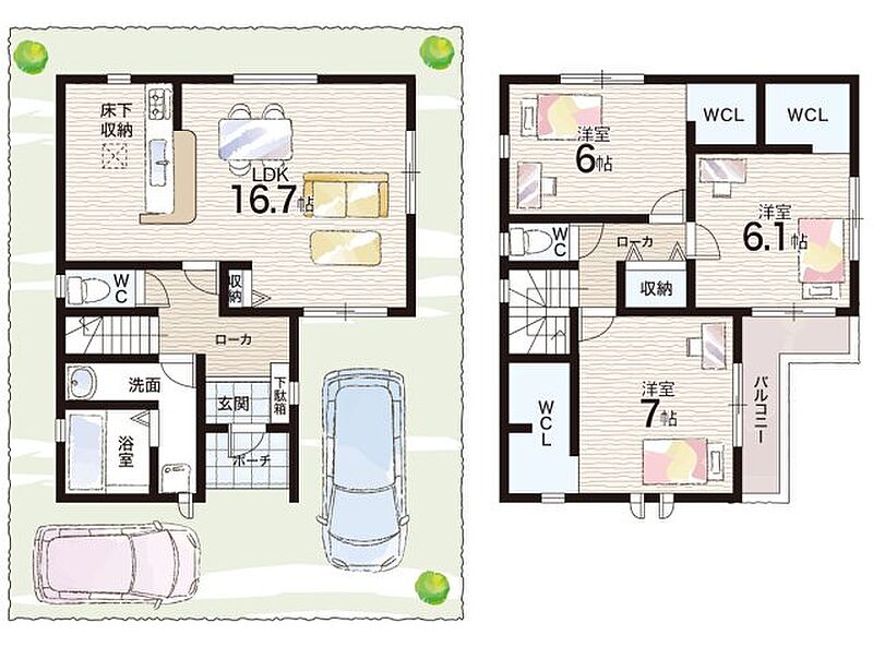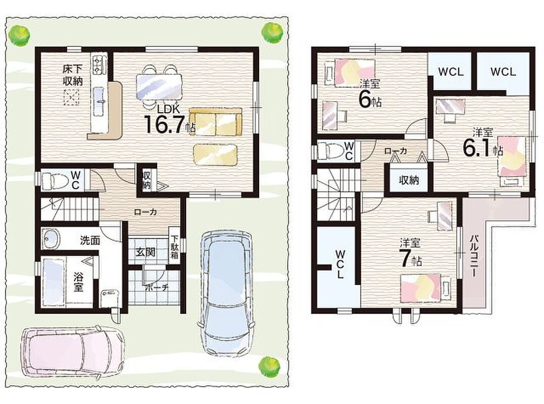 - ※完成予想図やCG合成画像は、門塀・植栽・庭・外観等、実際とは多少異なる場合があります。
