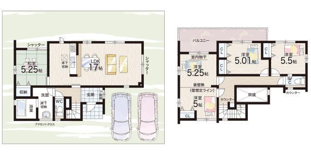 - ※完成予想図やCG合成画像は、門塀・植栽・庭・外観等、実際とは多少異なる場合があります。