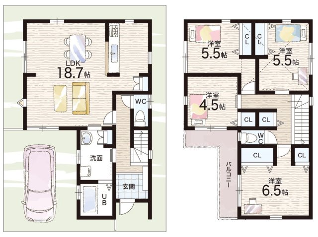 - ※完成予想図やCG合成画像は、門塀・植栽・庭・外観等、実際とは多少異なる場合があります。