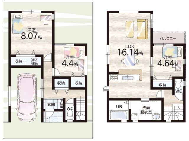 - ※完成予想図やCG合成画像は、門塀・植栽・庭・外観等、実際とは多少異なる場合があります。