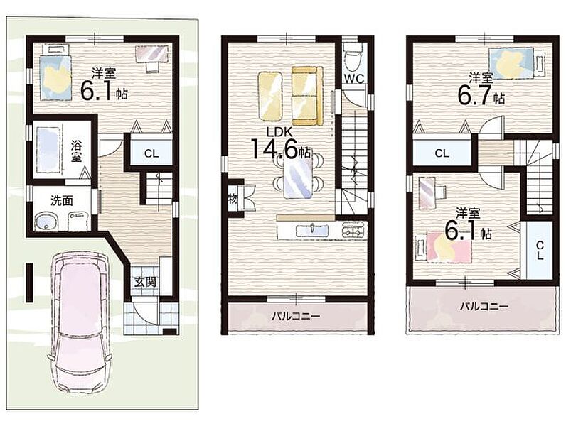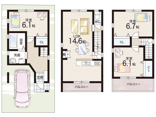 | 間取り | 3LDK | 建物構造 | 木造 地上3階建て |