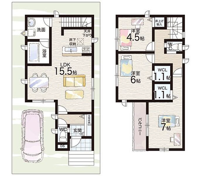 - ※完成予想図やCG合成画像は、門塀・植栽・庭・外観等、実際とは多少異なる場合があります。