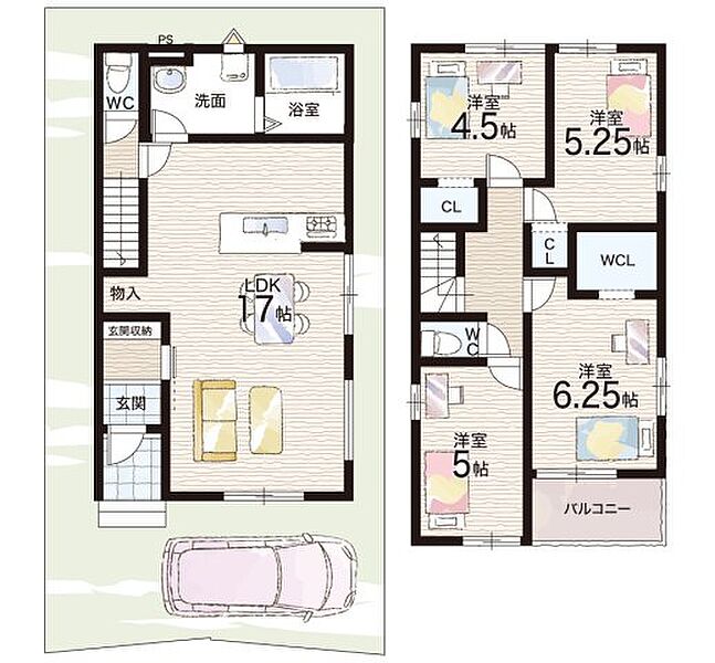 - ※完成予想図やCG合成画像は、門塀・植栽・庭・外観等、実際とは多少異なる場合があります。