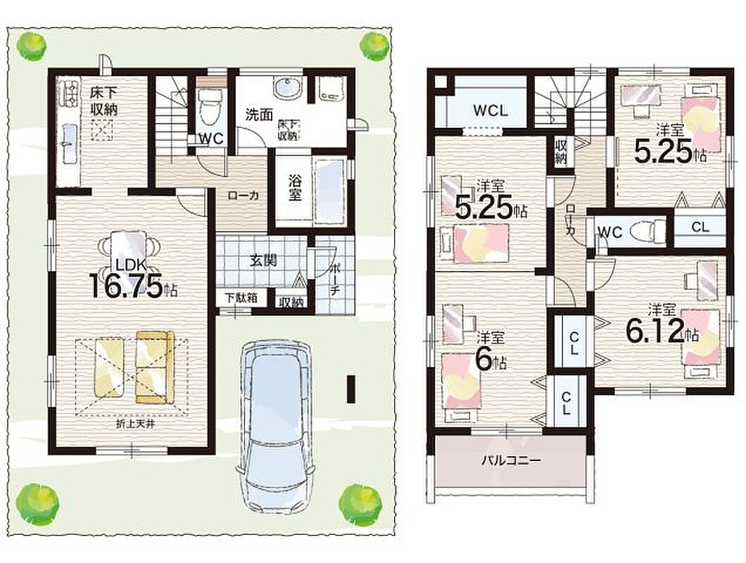 - ※完成予想図やCG合成画像は、門塀・植栽・庭・外観等、実際とは多少異なる場合があります。