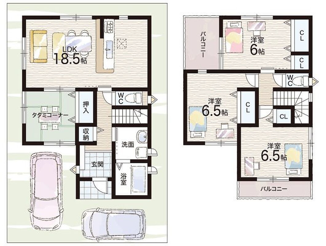 - ※完成予想図やCG合成画像は、門塀・植栽・庭・外観等、実際とは多少異なる場合があります。