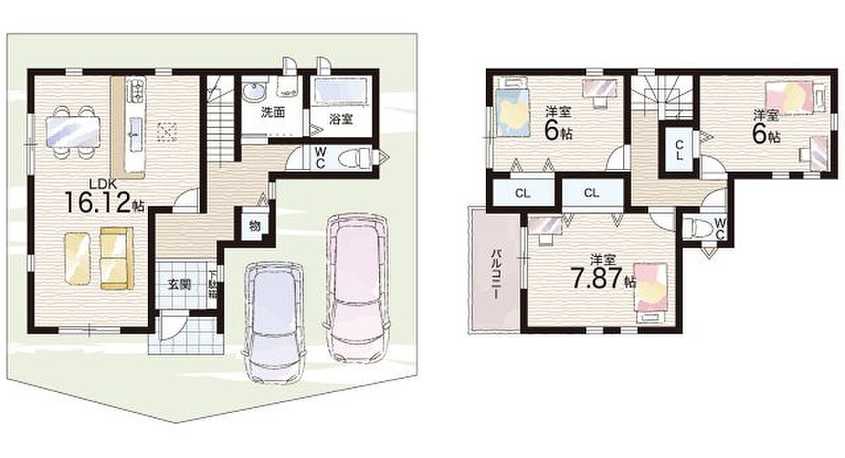 - ※完成予想図やCG合成画像は、門塀・植栽・庭・外観等、実際とは多少異なる場合があります。