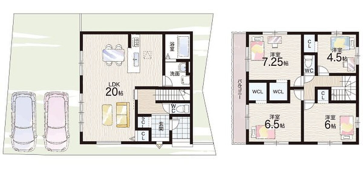 - ※完成予想図やCG合成画像は、門塀・植栽・庭・外観等、実際とは多少異なる場合があります。