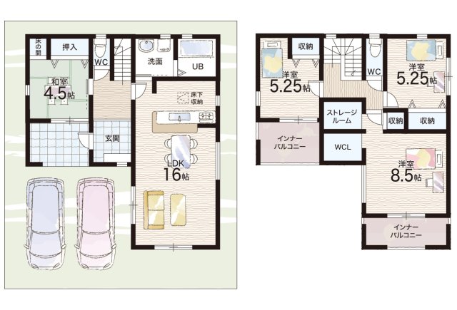 - ※完成予想図やCG合成画像は、門塀・植栽・庭・外観等、実際とは多少異なる場合があります。