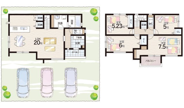 - ※完成予想図やCG合成画像は、門塀・植栽・庭・外観等、実際とは多少異なる場合があります。