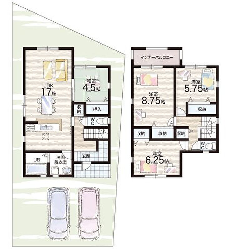 - ※完成予想図やCG合成画像は、門塀・植栽・庭・外観等、実際とは多少異なる場合があります。