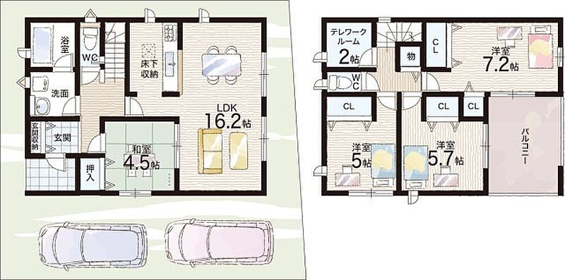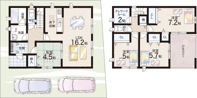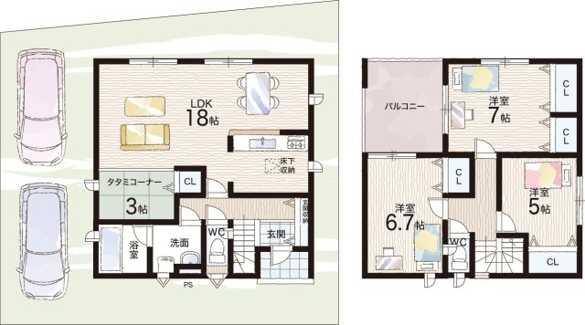 - ※完成予想図やCG合成画像は、門塀・植栽・庭・外観等、実際とは多少異なる場合があります。