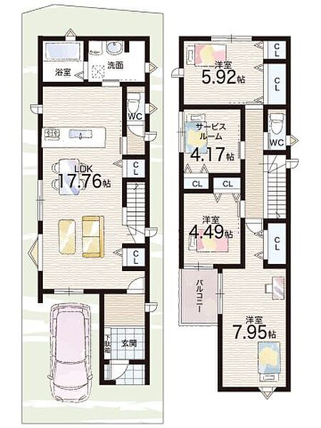 - ※完成予想図やCG合成画像は、門塀・植栽・庭・外観等、実際とは多少異なる場合があります。
