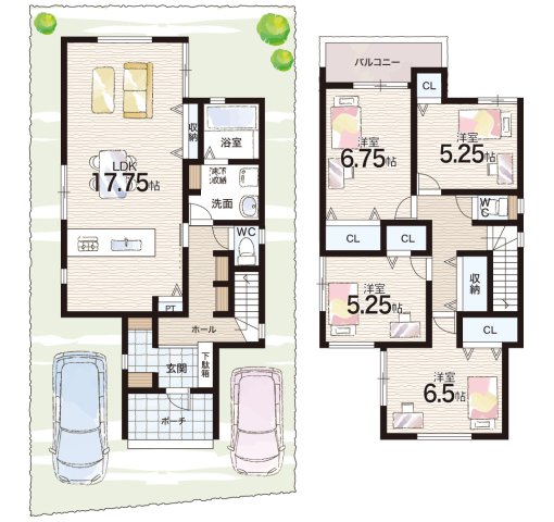- ※完成予想図やCG合成画像は、門塀・植栽・庭・外観等、実際とは多少異なる場合があります。
