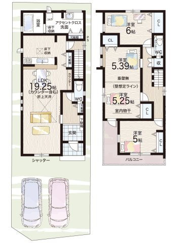 - ※完成予想図やCG合成画像は、門塀・植栽・庭・外観等、実際とは多少異なる場合があります。