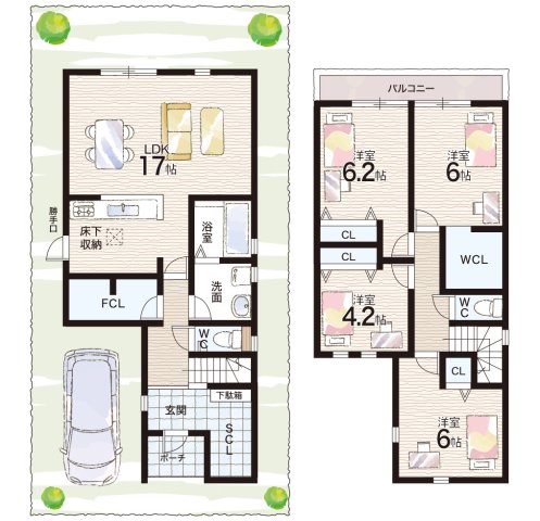 - ※完成予想図やCG合成画像は、門塀・植栽・庭・外観等、実際とは多少異なる場合があります。