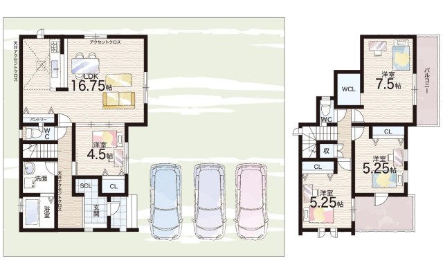 - ※完成予想図やCG合成画像は、門塀・植栽・庭・外観等、実際とは多少異なる場合があります。