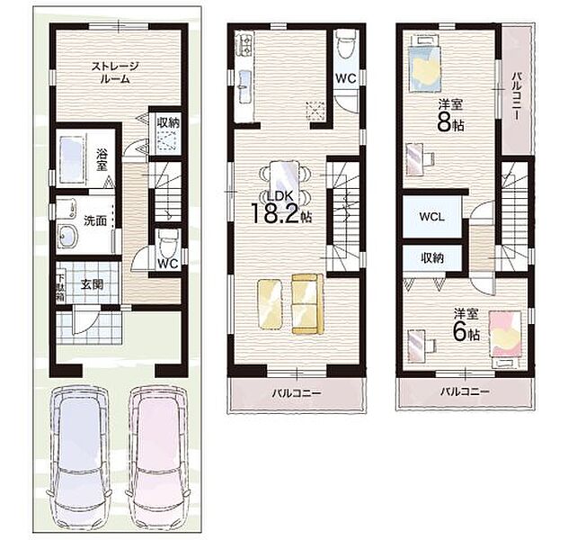 | 間取り | 2LDK+S(納戸) | 建物構造 | 木造 地上3階建て |