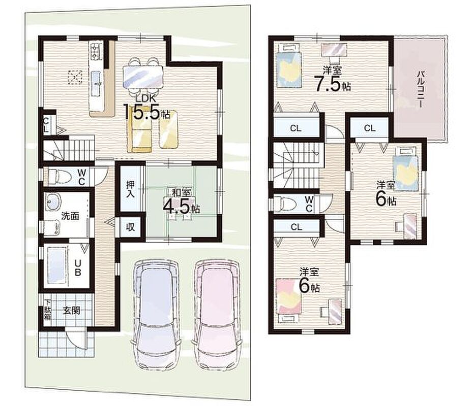 - ※完成予想図やCG合成画像は、門塀・植栽・庭・外観等、実際とは多少異なる場合があります。