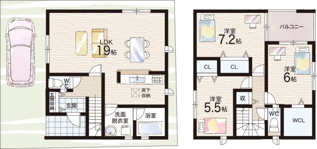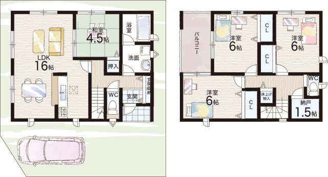 - ※完成予想図やCG合成画像は、門塀・植栽・庭・外観等、実際とは多少異なる場合があります。