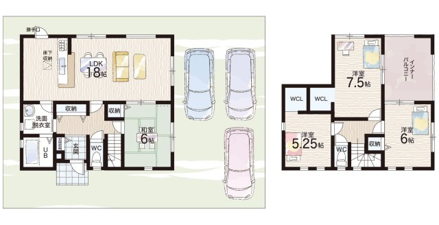 - ※完成予想図やCG合成画像は、門塀・植栽・庭・外観等、実際とは多少異なる場合があります。