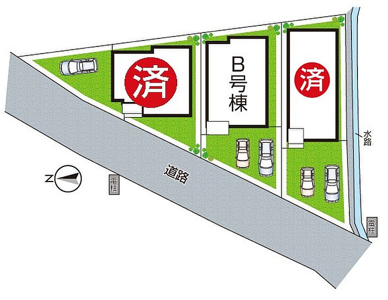 | 駐車場 | 2台 | 道路の幅員 | 北西側4.5m公道 |