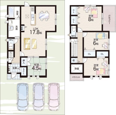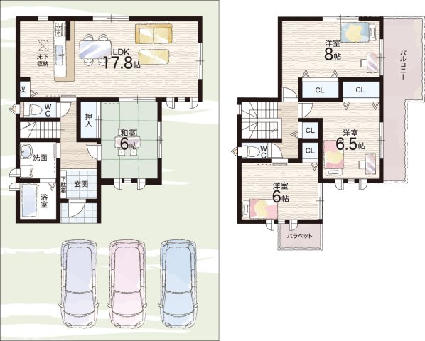 - ※完成予想図やCG合成画像は、門塀・植栽・庭・外観等、実際とは多少異なる場合があります。