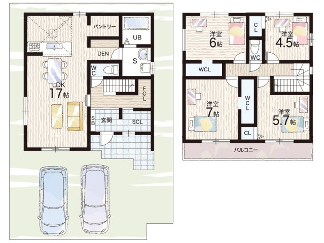 - ※完成予想図やCG合成画像は、門塀・植栽・庭・外観等、実際とは多少異なる場合があります。