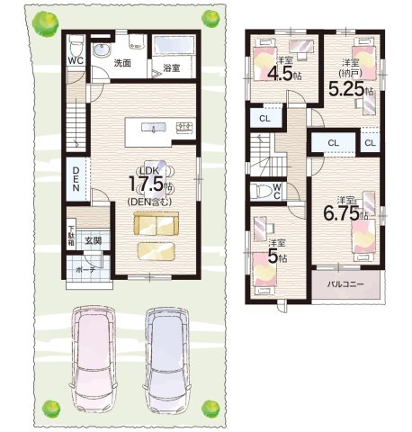- ※完成予想図やCG合成画像は、門塀・植栽・庭・外観等、実際とは多少異なる場合があります。