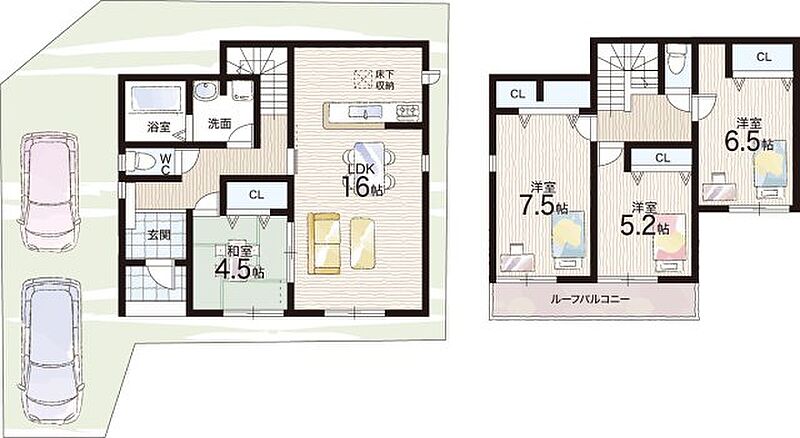 - ※完成予想図やCG合成画像は、門塀・植栽・庭・外観等、実際とは多少異なる場合があります。