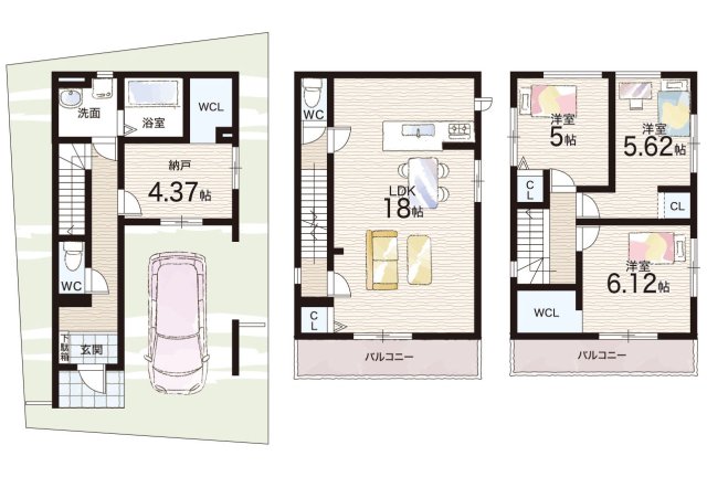 | 間取り | 3LDK+S(納戸) | 建物構造 | 木造 地上3階建て |