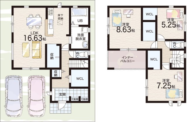 - ※完成予想図やCG合成画像は、門塀・植栽・庭・外観等、実際とは多少異なる場合があります。